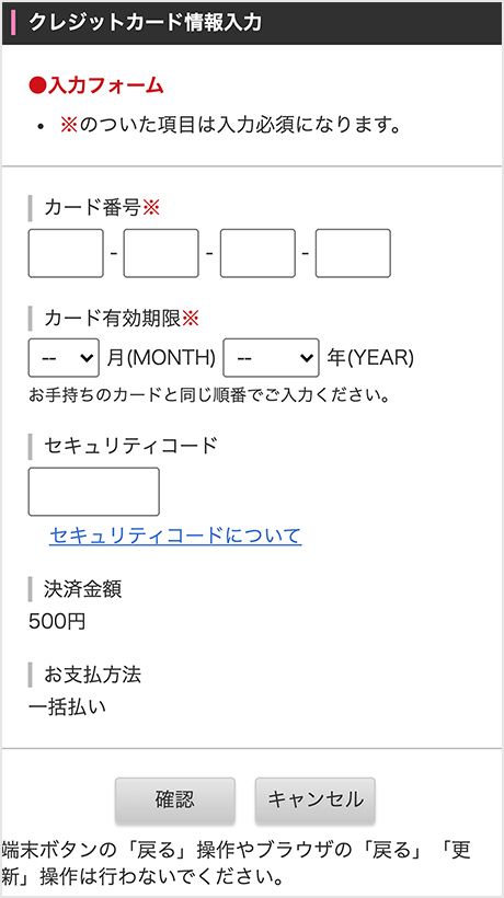 年会費の決済を行うため、クレジットカード情報を入力してください。入力後、「確認」ボタンを押してください。